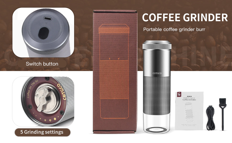 COTGCO Electric Burr Coffee Grinder| Cordless & USB rechargeable| Stainless Conical burr| From Extra Fine to Extra Coarse