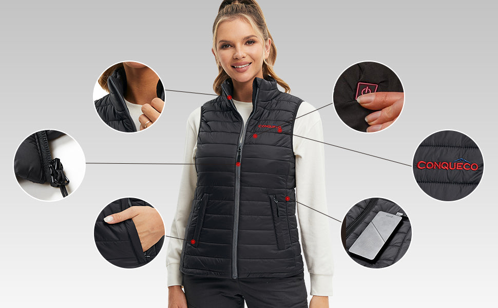 The Conqueco Heated Quilted Vest delivers effortless warmth without bulk — perfect over a sweater or under a jacket. Water-resistant, stylish, and built for comfort from daily commutes to weekend adventures. Stay warm, stay free to move.