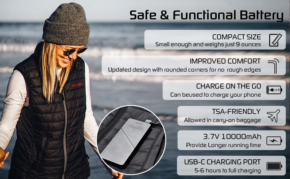 Up to 10 hours of heating on a single charge, the portable power bank can also be used as a power supply for your phone or other devices.