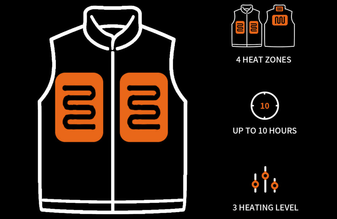 - Water-resistant heated vest keeps you dry on freezing rainy days.