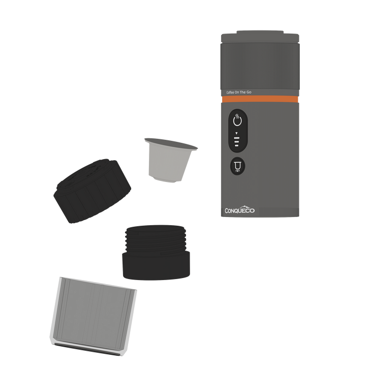 Compact yet powerful, the Conqueco Portable Espresso Maker features a high-capacity 13,500 mAh lithium battery — one of the largest in its class. Crafted from durable aluminum alloy and designed for perfect balance, this travel espresso machine lets you brew with both hot or cold water using Nespresso®-compatible capsules or freshly ground coffee.